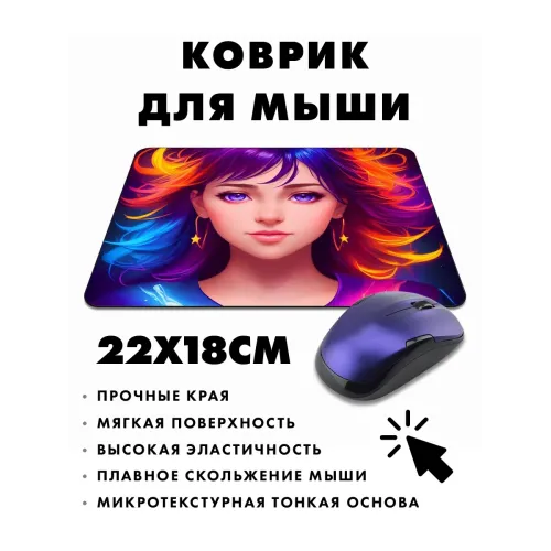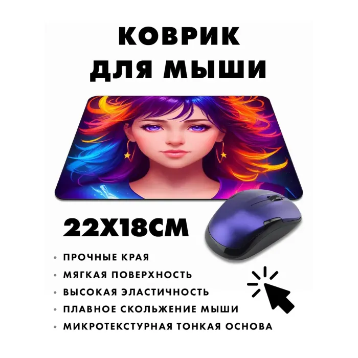 Коврик для мыши с изображением девушки. Материал: ткань с прорезиненной основой.