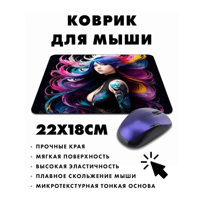 Коврик для мыши с изображением девушки. Прорезиненная основа, стойкое изображение.