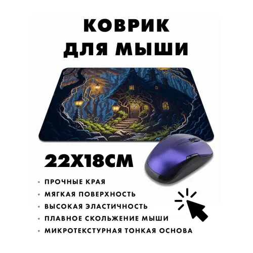 Коврик для мыши с изображением "Домик в лесу" — это стильный и практичный аксессуар, который добавит уют в рабочее пространство. Прорезиненная основа обеспечивает надежное сцепление с поверхностью, а толщина 3 мм гарантирует комфорт при использовании. Размер коврика составляет 22х18 см, что делает его идеальным для любого стола.
