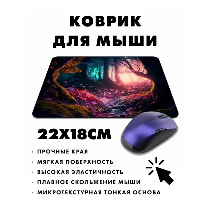 Коврик для мыши с изображением леса — это идеальный аксессуар для создания уютной атмосферы рабочего места. Прорезиненная основа обеспечивает надежное сцепление с поверхностью, а размер 22х18 см и толщина 3 мм делают его удобным в использовании.