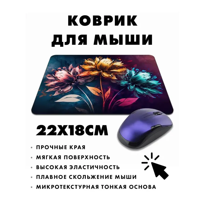 Коврик для мыши — это не только практичный аксессуар, но и стильный элемент рабочего пространства. С изображением ярких цветов, он добавляет уют и атмосферу в офис или домашний кабинет.