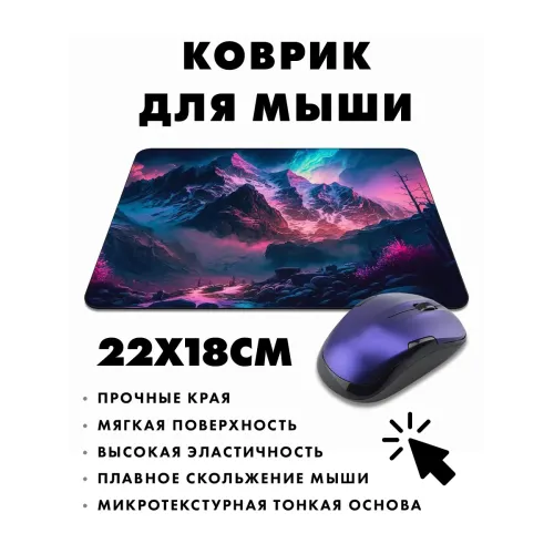 Коврик для компьютерной мыши с изображением гор — это не только практичный аксессуар, но и стильное дополнение рабочего пространства. Прорезиненная основа обеспечивает надежное сцепление с поверхностью, а размеры 22х18 см и толщина 3 мм делают его удобным в использовании.