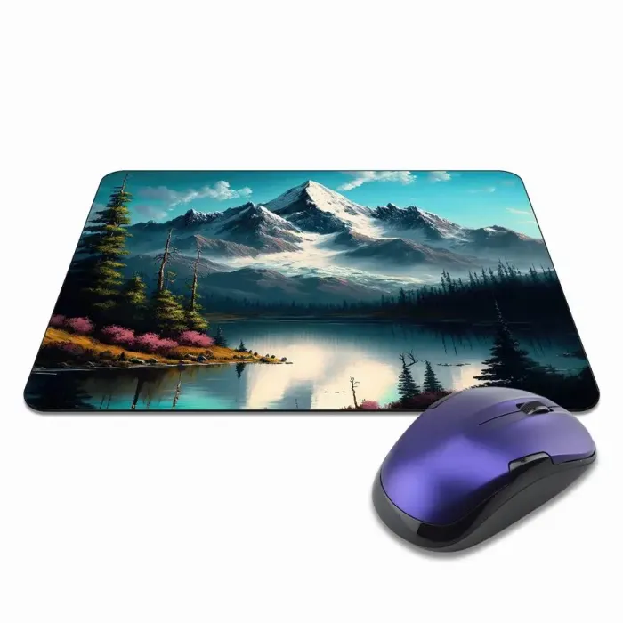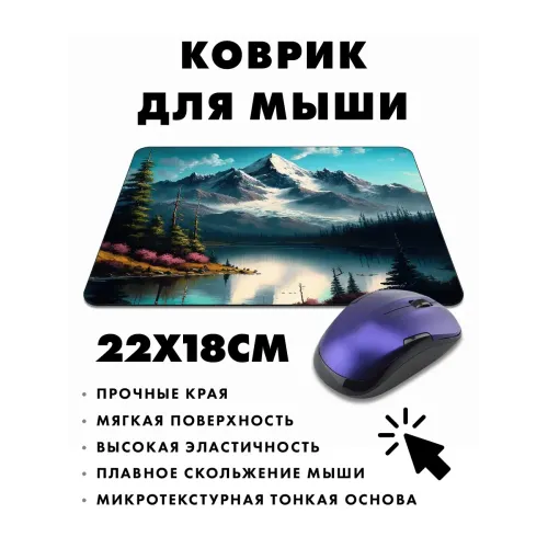 Коврик для мыши с изображением гор и озера — это не только практичный аксессуар, но и элемент декора рабочего пространства. Он добавляет уют и атмосферу природы в повседневную жизнь. Прорезиненная основа обеспечивает надежное сцепление с поверхностью стола, а толщина в 3 мм гарантирует комфорт при использовании.