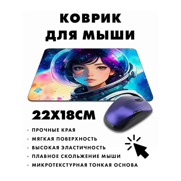 Коврик для мыши — это не просто аксессуар, а элемент стиля и комфорта. С изображением аниме девушки-космонавта, он станет ярким акцентом на рабочем месте и поднимет настроение во время работы или игр.