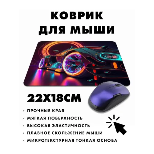 Коврик для мыши — идеальный аксессуар для любителей компьютерных игр и работы за ПК. Этот прорезиненный коврик с изображением спортивного автомобиля не только украсит рабочее место, но и обеспечит комфортное использование мышки благодаря хорошему скольжению.
