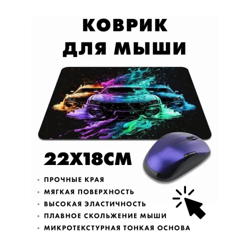 Коврик для мыши с изображением спортивных автомобилей — это стильный и практичный аксессуар, который добавит ярких красок в рабочее пространство. Прорезиненная основа обеспечивает надежное сцепление с поверхностью стола, а размер 22х18 см делает его идеальным для любого рабочего места.