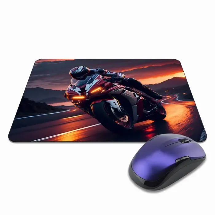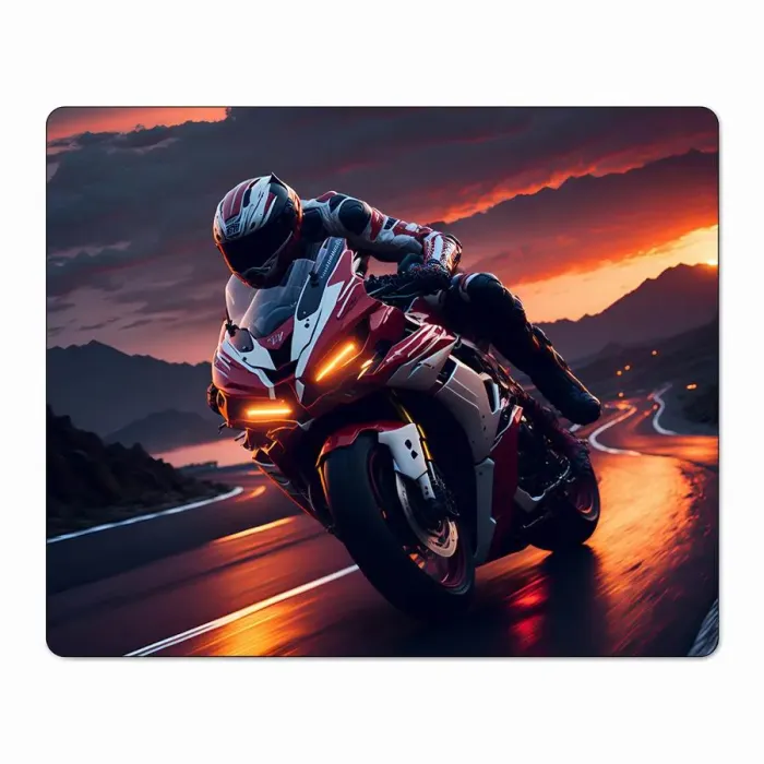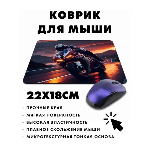 Коврик для мыши с изображением мотоциклиста — это не только практичный аксессуар, но и стильный элемент рабочего пространства. Он создан из прорезиненного материала, что обеспечивает отличное сцепление с поверхностью стола и предотвращает скольжение.
