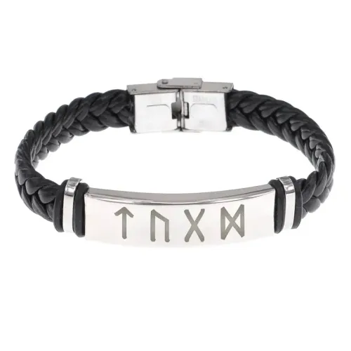 Кожаный браслет с плетёным дизайном и руническими символами.