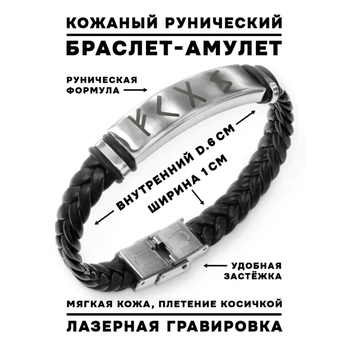 Кожаный рунический браслет Успешная реализация идей BSKR1-006