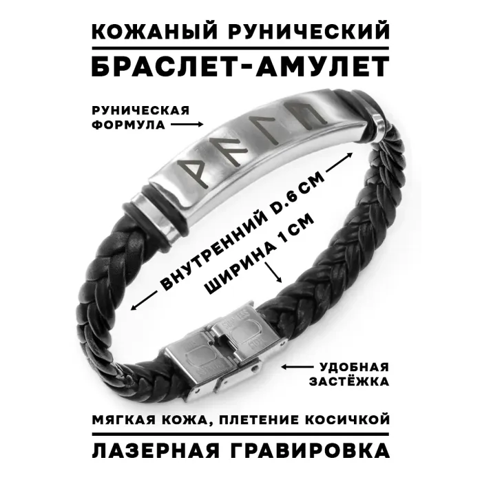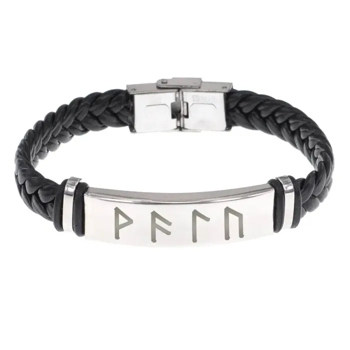 Кожаный рунический браслет с плетёным дизайном.