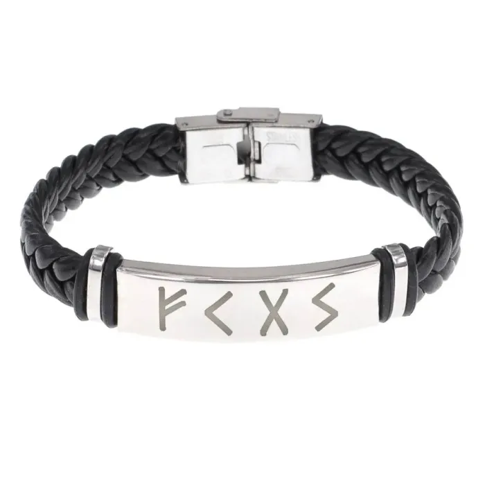Рунический браслет из кожи и нержавеющей стали с плетёным дизайном.