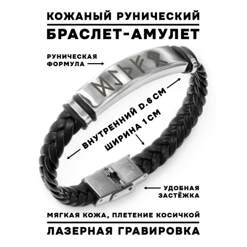 Кожаный рунический браслет с плетёной текстурой и символикой для привлечения денег.