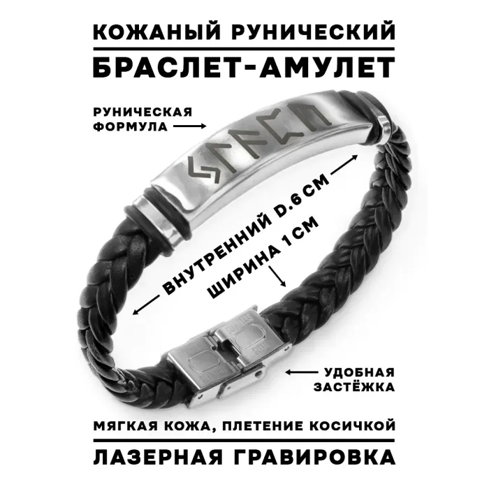 Кожаный браслет с плетёным дизайном и руническими символами.