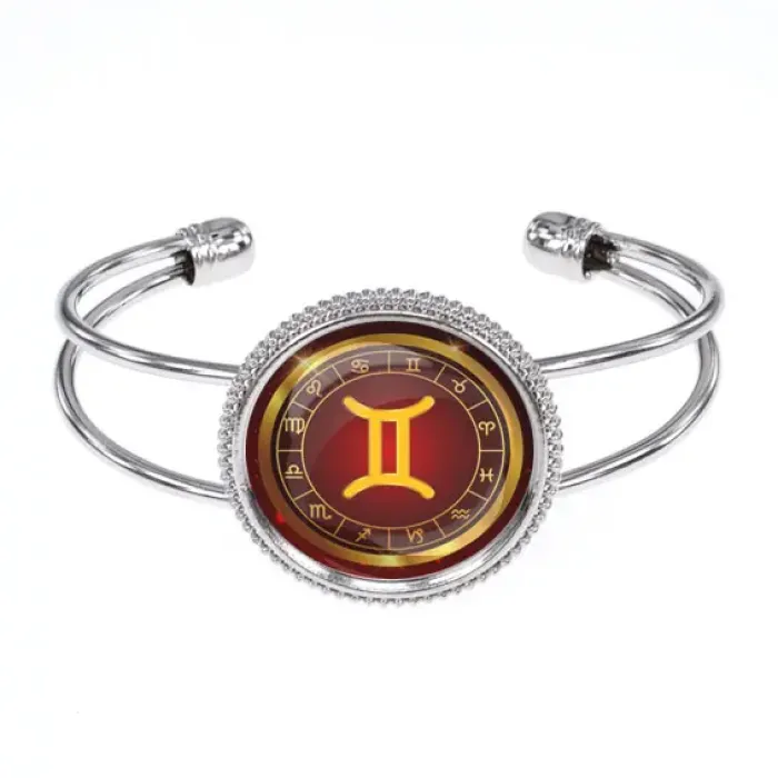 Браслет Знаки Зодиака - Близнецы — это стильный аксессуар, который не только подчеркивает индивидуальность, но и символизирует двойственность и многогранность характера людей, рожденных под знаком Близнецов. Изготовлен из бижутерного сплава с покрытием под серебро и дополнен стеклянной вставкой диаметром 25 мм, защищенной выпуклой линзой. Упаковка в прозрачный пакет делает его идеальным подарком для близких или для себя. Открытый дизайн позволяет носить браслет на любой руке без ограничения по размеру.