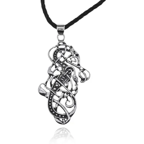 Амулет из металла с покрытием под серебро в виде дракона викингов на регулируемом шнурке.
