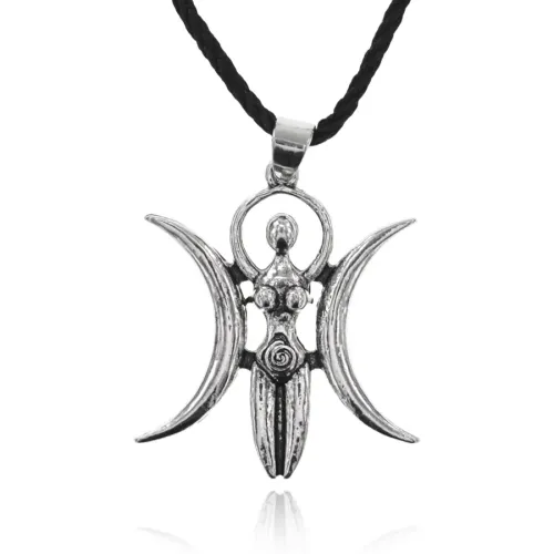 Амулет «Богиня Плодородия» из металла с покрытием под серебро на шнурке.