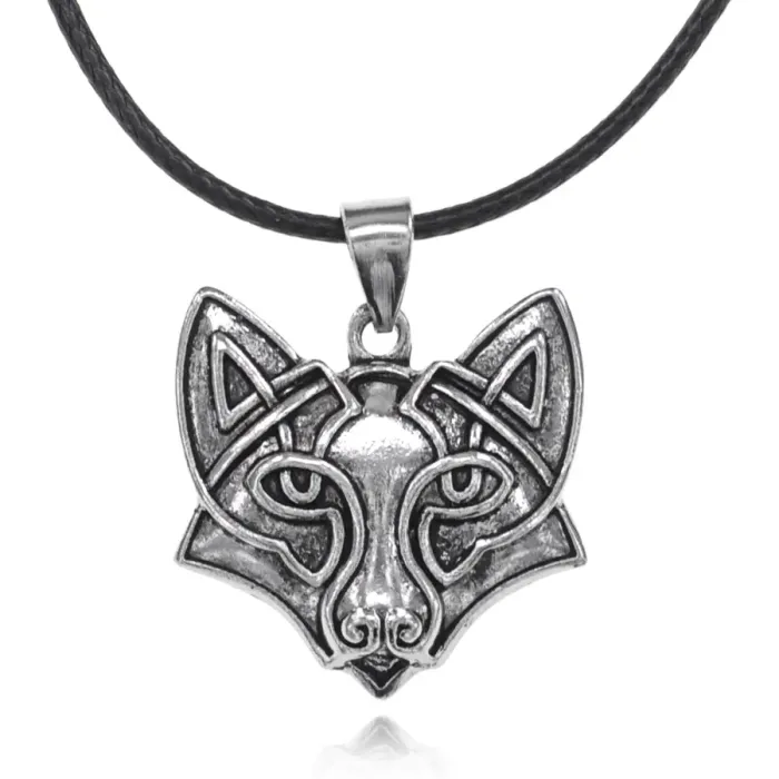 Амулет с кельтским символом лисы, изготовленный из металла с серебряным покрытием, на регулируемом шнурке.