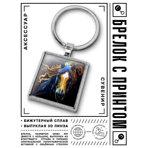 Брелок Конь — стильный и оригинальный аксессуар, который станет отличным подарком или сувениром. Изготовленный из бижутерного сплава с покрытием под серебро, стали и стекла, этот брелок не только красив, но и прочен. Размеры изделия составляют 28х60 мм вместе с кольцом, а изображение защищено выпуклой стеклянной линзой, что придаёт ему дополнительную привлекательность. Упакован в прозрачный пакет для удобства хранения и презентации.