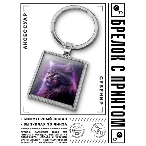 Брелок Кошка — стильный аксессуар, который станет не только практичным дополнением ключей, но и ярким украшением. Изготовленный из бижутерного сплава с покрытием под серебро, стали и стекла, этот брелок привлекает внимание своим элегантным дизайном. Размеры изделия вместе с кольцом составляют 28х60 мм, что делает его удобным для ношения. Защита изображения выпуклой стеклянной линзой гарантирует долговечность и сохранение яркости деталей. Упакован в прозрачный пакет — отличный вариант для подарка или личного использования.