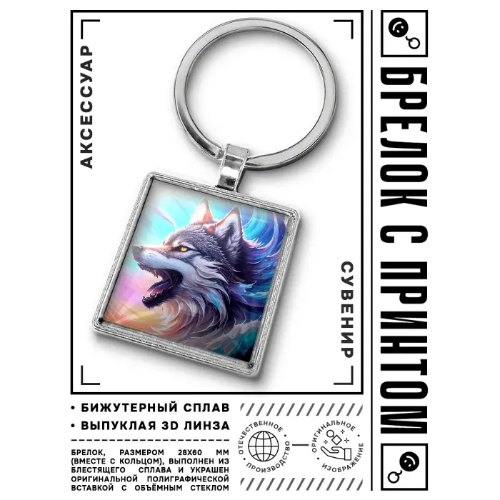 Брелок Волк — это стильный аксессуар, который станет отличным дополнением к ключам или сумке. Символизируя силу и независимость, волк в культуре многих народов олицетворяет верность и дружбу. Изготовленный из бижутерного сплава с покрытием под серебро и стали, этот брелок отличается прочностью и долговечностью. Размеры изделия составляют 28х60 мм вместе с кольцом, а изображение защищено выпуклой стеклянной линзой, что придаёт ему особую привлекательность. Упакован в прозрачный пакет для удобства хранения или подарка.