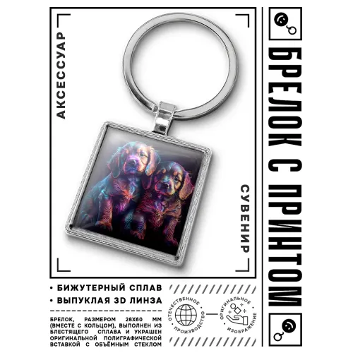 Брелок Щенки BKG-0070 — это стильный и оригинальный аксессуар, который станет отличным дополнением к ключам или сумке. Изготовленный из бижутерного сплава с покрытием под серебро, стали и стекла, он сочетает в себе прочность и элегантность. Размер брелка вместе с кольцом составляет 28х60 мм, что делает его компактным и удобным в использовании. Изображение защищено выпуклой стеклянной линзой, что придаёт ему особую выразительность. Упакован в прозрачный пакет, этот брелок станет прекрасным подарком для любителей собак или просто стильных аксессуаров.