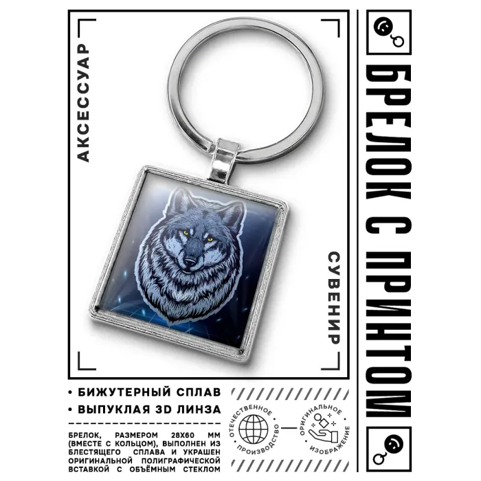Брелок Волк — это стильный и символичный аксессуар, который станет отличным дополнением к ключам или сумке. Изготовленный из бижутерного сплава с покрытием под серебро, стали и стекла, он сочетает в себе прочность и элегантность. Размер брелка вместе с кольцом составляет 28х60 мм, а изображение защищено выпуклой стеклянной линзой, что придаёт ему особую выразительность. Упакован в прозрачный пакет, данный брелок может стать прекрасным подарком для любителей животных и ценителей оригинальных аксессуаров. В культуре волк символизирует силу и свободу, что делает этот брелок не только красивым предметом, но и носителем глубокого смысла.