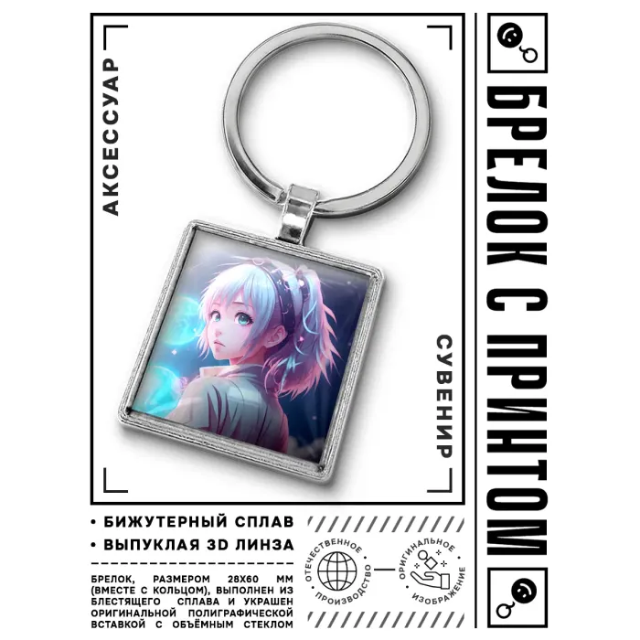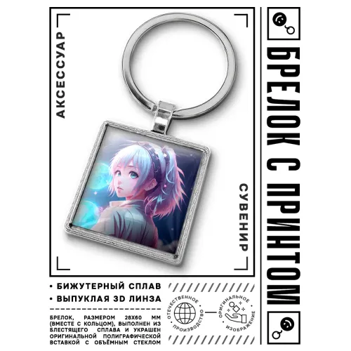 Брелок Аниме девушка BKG-0087 — это стильный аксессуар, который станет отличным дополнением к ключам или сумке. Изготовленный из бижутерного сплава с покрытием под серебро и стали, он сочетает в себе прочность и элегантность. Размер брелка вместе с кольцом составляет 28х60 мм, что делает его компактным и удобным в использовании. Изображение защищено выпуклой стеклянной линзой, обеспечивая долговечность и яркость деталей. Упакован в прозрачный пакет, брелок станет замечательным подарком для поклонников аниме и коллекционеров.