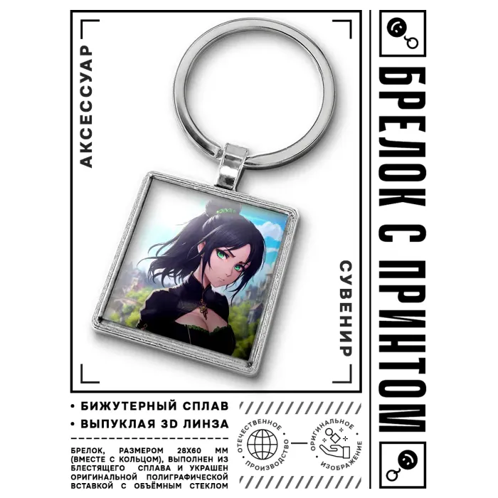 Брелок Аниме девушка — это стильный аксессуар, который станет отличным дополнением к ключам или сумке. Он выполнен из бижутерного сплава с покрытием под серебро и стали, что обеспечивает долговечность и привлекательный внешний вид. Изображение защищено выпуклой стеклянной линзой, придающей яркость и четкость деталям. Размер брелка (вместе с кольцом) составляет 28х60 мм, что делает его компактным и удобным в использовании. Упакован в прозрачный пакет, идеален для подарка или личного использования.