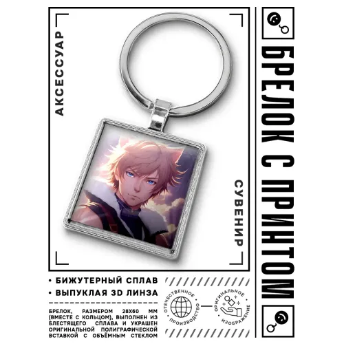 Брелок Аниме парень неко — это стильный аксессуар, который станет отличным дополнением к ключам или рюкзаку. Он изготовлен из бижутерного сплава с покрытием под серебро и стали, что обеспечивает долговечность и привлекательный внешний вид. Размер брелка вместе с кольцом составляет 28х60 мм, а изображение защищено выпуклой стеклянной линзой, придающей ему особую выразительность.