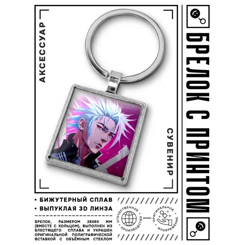 Брелок Аниме парень — это стильный аксессуар, который станет отличным дополнением к ключам или рюкзаку. Он выполнен из бижутерного сплава с покрытием под серебро и стали, что обеспечивает долговечность и привлекательный внешний вид. Размер брелка вместе с кольцом составляет 28х60 мм, а изображение защищено выпуклой стеклянной линзой, что придаёт ему особую выразительность.
