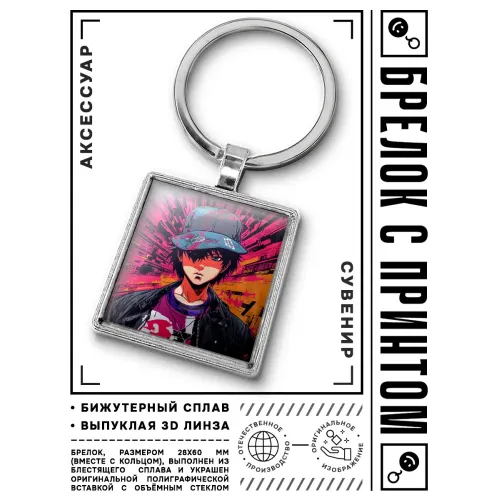 Брелок Аниме парень — это стильный аксессуар, который станет отличным дополнением к ключам или рюкзаку. Он выполнен из бижутерного сплава с покрытием под серебро, стали и стекла, что придаёт ему прочность и элегантность. Размер брелка вместе с кольцом составляет 28х60 мм, а изображение защищено выпуклой стеклянной линзой для долговечности. Упакован в прозрачный пакет, что делает его идеальным вариантом для подарка или личного использования.