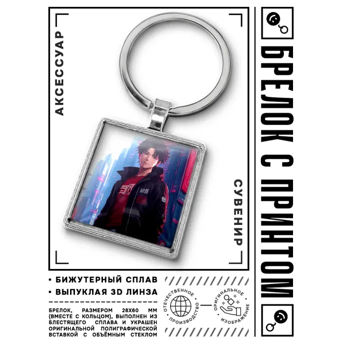 Брелок Аниме парень BKG-0129 — стильный аксессуар, который станет отличным дополнением для любителей аниме и оригинальных подарков. Изготовленный из бижутерного сплава с покрытием под серебро, стали и стекла, этот брелок отличается прочностью и привлекательным внешним видом.