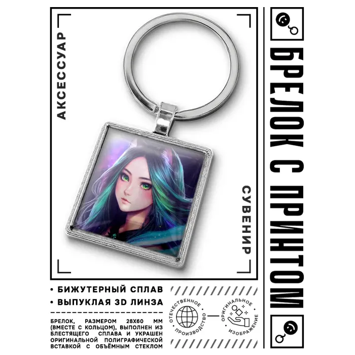 Брелок Аниме девушка Неко — это стильный аксессуар, который привнесет в повседневную жизнь яркие эмоции и оригинальность. Этот брелок выполнен из бижутерного сплава с покрытием под серебро, стали и стекла, что обеспечивает долговечность и привлекательный внешний вид. Размер изделия вместе с кольцом составляет 28х60 мм, а изображение защищено выпуклой стеклянной линзой, что придаёт ему особую выразительность.