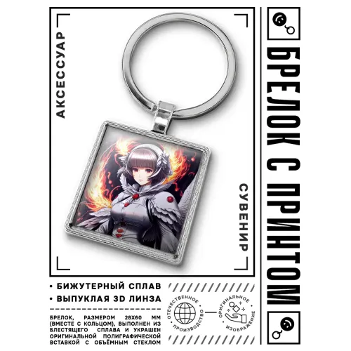 Брелок Аниме девушка ангел — это стильный аксессуар, который добавит яркости и оригинальности любому ключу или сумке. Изготовленный из бижутерного сплава с покрытием под серебро, стали и стекла, он сочетает в себе прочность и элегантность. Размер брелка вместе с кольцом составляет 28х60 мм, что делает его компактным и удобным для ношения. Изображение защищено выпуклой стеклянной линзой, что придаёт ему особую выразительность. Упакован в прозрачный пакет, этот брелок станет отличным подарком для поклонников аниме.