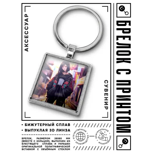 Брелок Аниме девушка — это стильный аксессуар, который станет отличным дополнением к ключам или рюкзаку. Он выполнен из бижутерного сплава с покрытием под серебро, стали и стекла, что обеспечивает долговечность и привлекательный внешний вид. Размер брелка вместе с кольцом составляет 28х60 мм, а изображение защищено выпуклой стеклянной линзой, что придаёт ему особую выразительность. Упакован в прозрачный пакет, этот брелок идеально подходит как для личного использования, так и в качестве подарка для поклонников аниме.