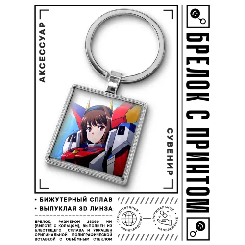 Брелок Аниме девушка Гандам BKG-0143 — это стильный аксессуар, который станет отличным дополнением для любителей аниме и коллекционеров. Изготовленный из бижутерного сплава с покрытием под серебро, стали и стекла, он сочетает в себе прочность и элегантность. Размер брелка вместе с кольцом составляет 28х60 мм, что делает его удобным для ношения. Изображение защищено выпуклой стеклянной линзой, что придаёт ему особую выразительность. Упаковка в прозрачный пакет добавляет товару презентабельности и делает его идеальным подарком или сувениром.