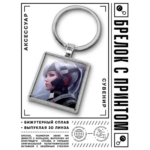 Брелок Киберпанк девушка — стильный аксессуар, который подчеркнёт индивидуальность и добавит нотку футуризма в повседневную жизнь. Изготовленный из бижутерного сплава с покрытием под серебро, стали и стекла, он отличается прочностью и элегантным дизайном.
