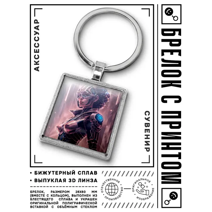 Брелок Киберпанк девушка — это стильный аксессуар, который добавит оригинальности любому набору ключей. Изготовленный из бижутерного сплава с покрытием под серебро и стали, он отличается прочностью и долговечностью. Размер брелка вместе с кольцом составляет 28х60 мм, что делает его удобным для ношения. Изображение защищено выпуклой стеклянной линзой, что придаёт ему особую привлекательность. Упакован в прозрачный пакет, этот брелок станет отличным подарком или сувениром для ценителей киберпанка.