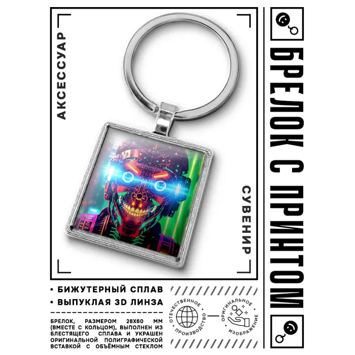 Этот брелок станет не только практичным аксессуаром, но и выразительным элементом стиля для ценителей жанра киберпанк.
