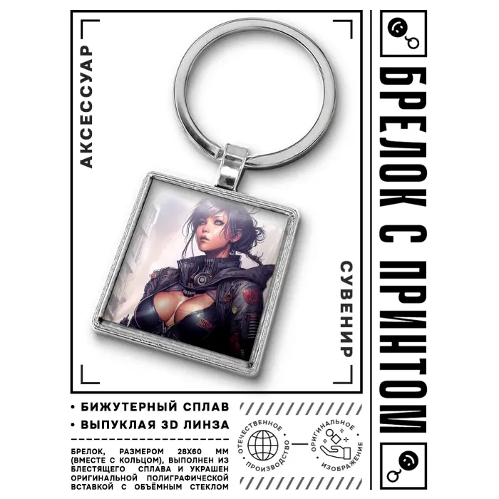 Брелок Киберпанк девушка — стильный аксессуар, который станет отличным дополнением для ключей или сумки. Этот уникальный предмет вдохновлён эстетикой киберпанка и привносит в повседневную жизнь нотку футуризма.