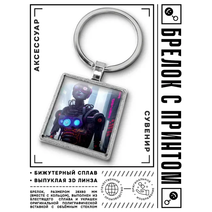 Брелок Киберпанк с изображением девушки-киборга — это стильный аксессуар, который добавит оригинальности любому ключу или сумке. Уникальный дизайн в стиле киберпанка символизирует будущее и технологический прогресс, что делает его идеальным подарком для поклонников жанра.