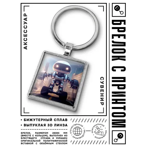 Брелок Киберпанк робот — стильный аксессуар, который станет отличным дополнением к ключам или рюкзаку. Этот уникальный брелок выполнен из бижутерного сплава с покрытием под серебро и стали, что придаёт ему современный вид. Размеры брелока вместе с кольцом составляют 28х60 мм, а изображение защищено выпуклой стеклянной линзой, что обеспечивает долговечность и яркость деталей. Упаковка в прозрачный пакет делает его идеальным вариантом для подарка или сувенира. Вдохновлённый эстетикой киберпанка, этот брелок будет интересен любителям футуристического дизайна.