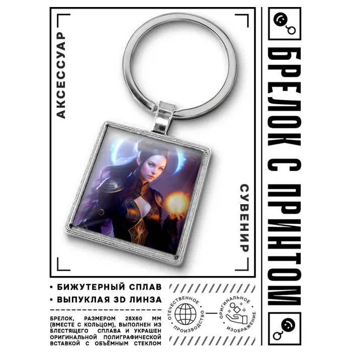 Брелок Заклинание ведьмы — это уникальный аксессуар, который станет не только стильным дополнением ключей, но и символом магии и загадочности. Изготовленный из бижутерного сплава с покрытием под серебро и стали, он отличается прочностью и долговечностью. Размер брелка вместе с кольцом составляет 28х60 мм, что делает его удобным для ношения. Изображение защищено выпуклой стеклянной линзой, придающей ему особый шарм. Такой брелок может стать отличным подарком для ценителей мистики и волшебства.