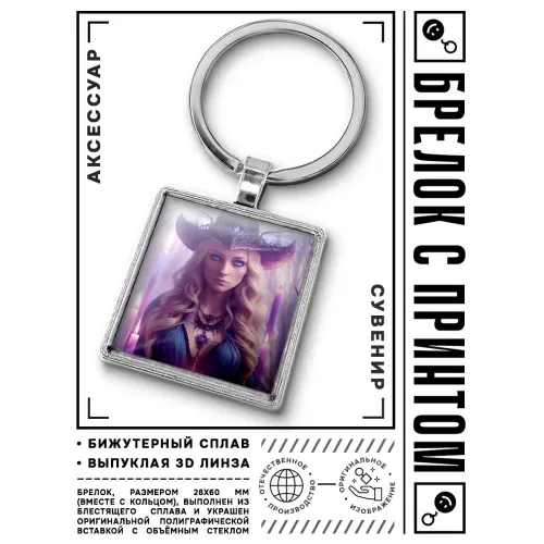 Брелок "Ведьма" — это уникальный аксессуар, который добавит загадочности и стиля любому ключу или сумке. Изготовленный из бижутерного сплава с покрытием под серебро, стали и стекла, этот брелок не только красив, но и прочен. Размеры изделия вместе с кольцом составляют 28х60 мм, что делает его удобным для ношения. Изображение защищено выпуклой стеклянной линзой, что придает ему особую выразительность. Такой брелок станет отличным подарком или элементом личного стиля.