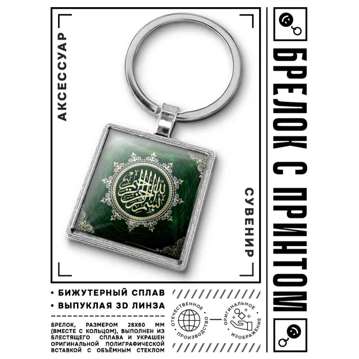 Брелок Бисмиллях BKG-0239 — это стильный и символичный аксессуар, который станет прекрасным дополнением к ключам или сумке. Изготовленный из бижутерного сплава с покрытием под серебро, стали и стекла, он сочетает в себе прочность и элегантность.