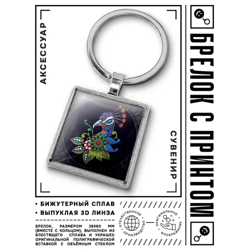Брелок Павлин BKG-0258 — это стильный аксессуар, который станет отличным дополнением к ключам или сумке. Он символизирует красоту и грацию, что делает его прекрасным подарком для близких. Изготовлен из бижутерного сплава с покрытием под серебро, стали и стекла, брелок отличается прочностью и долговечностью.