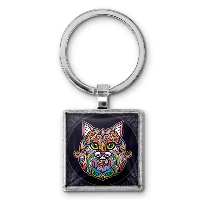 Брелок для ключей из бижутерного сплава со стеклянной линзой.