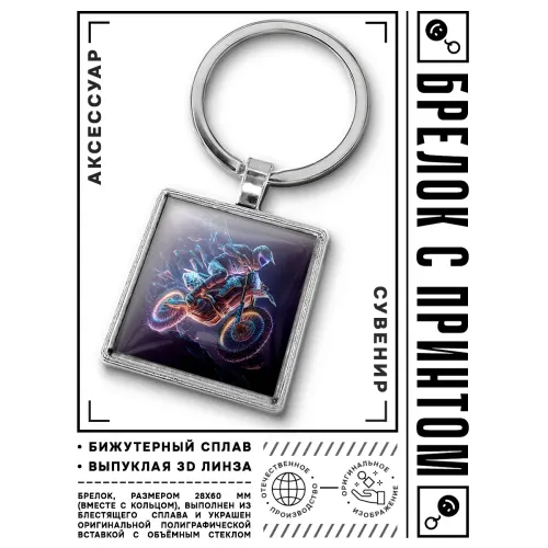 Брелок Мотоциклист BKG-0278 — стильный аксессуар, который станет отличным подарком для любителей мотоциклов и активного образа жизни. Изготовленный из бижутерного сплава с покрытием под серебро, стали и стекла, этот брелок не только красив, но и прочен. Размер изделия составляет 28х60 мм вместе с кольцом, а изображение защищено выпуклой стеклянной линзой, что обеспечивает долговечность и яркость цветов. Упаковка в прозрачный пакет делает его идеальным вариантом для презента или личного использования. Такой брелок будет напоминать о страсти к скорости и свободе на дороге.