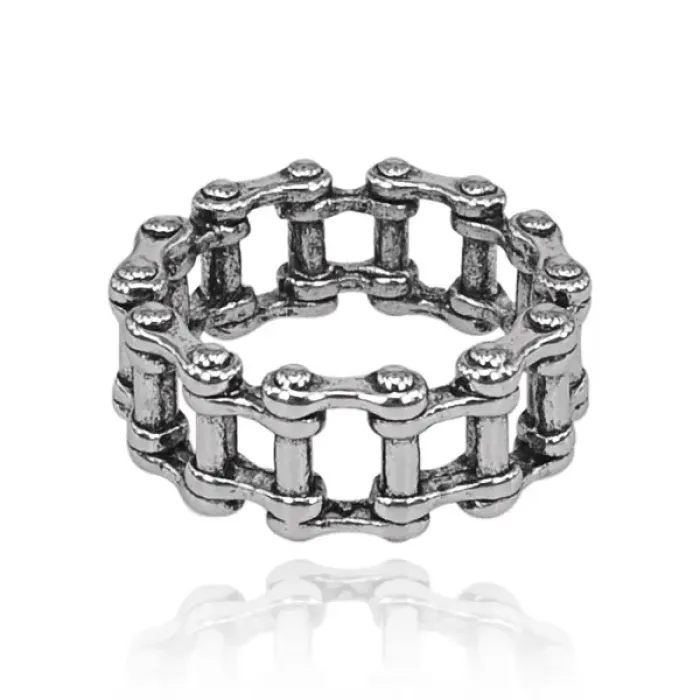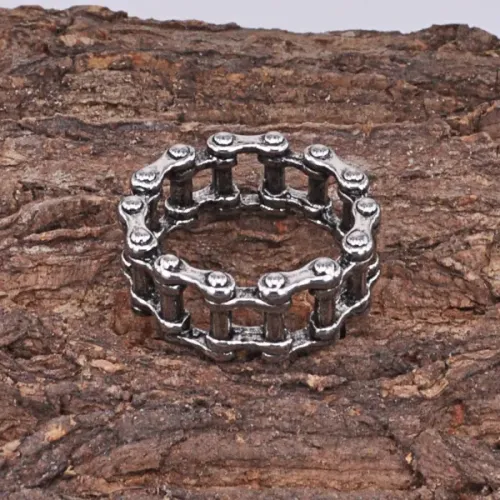 Кольцо из металла с дизайном в виде цепи.