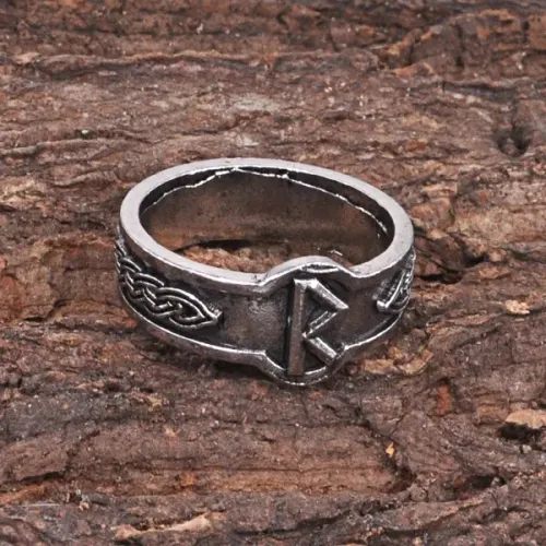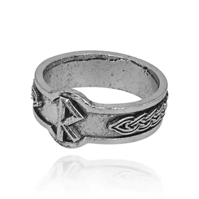 Кольцо с символом руны Райдо из металла с покрытием под серебро.